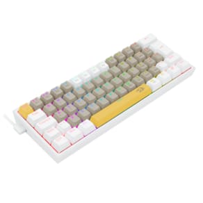 Características: Marca: Redragon Modelo: Teclado Mecânico Gamer Fizz Rgb Amarelo Branco e Cinza Switch: PT-Brown (Marrom) Acionamento: Mecânico Hotswap DIY: Sim COR: Amarelo, Branco e Cinza Formato: 60% Design: Carcaça alta Layout: ABNT2 Conectividade: USB 2.0 Tipo C Altura Ajustável: Sim Materiais do case: Plástico ABS Iluminação: RGB Redragon Chroma Mk.II Rollover: N-Key Rollover Comprimento do cabo: 1.5 m Keycaps: ABS doubleshot Conteúdo da Embalagem: Teclado Mecânico Gamer Fizz Rgb Amarelo Branco e Cinza Garantia: 12 meses de garantia Medida: 2 cm x 10 cm 33 cm Peso: 412g