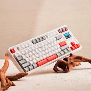 Design Compacto e Elegante: O layout 87% TKL otimiza o espaço sem comprometer funcionalidades, enquanto a combinação de cores Grey, White e Red traz um visual moderno e único.