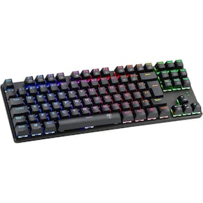 A T-Dagger traz para você este teclado mecânico que é ideal para os seus jogos já que garante qualidade e funcionalidade excelente. Além de ter um design moderno, vem com iluminação RGB deixando ele ainda mais maravilhoso. Modelo: Bora T-TGK315-BL-SP Tipo de conexão: Com fio Interface: USB-C Mecânico: Sim Modelo Bora T-TGK315-BL-SP Tipo de conexão Com fio Interface USB-C Mecânico Sim Switch Blue Keycaps Teclas de injeção de injeção dupla, gravadas a laser. Iluminação RGB Tamanho Tenkeyless Software Si Anti-ghosting 100% Tamanho do cabo 1,6 m Descanso de pulso Não Material Plástico ABS reforçado Cor Preto Peso bruto 570 g. Dimensões 355 x 124 x 28 mm