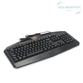 - Teclado para jogos, possuindo teclas slim com impressão a laser e apoio aos pulsos ,proporcionando maior conforto ao jogar.