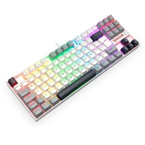 Especificações: Switches: redragon marrom Acionamento: mecânico Hotswap diy: sim Cor: branco preto e cinza Formato: tkl Estrutura: tray mount Design: teclas flutuantes com borda Layout: abnt2 Conectividade: usb Software: sim Altura ajustável: sim Materiais do case: plástico abs Iluminação: rgb Rollover: n-key Comprimento do cabo: 1.80m Keycaps: abs doubleshot Dimensões aproximadas do produto: 354 x 124 x 37 mm Peso aproximado do produto: 851 g
