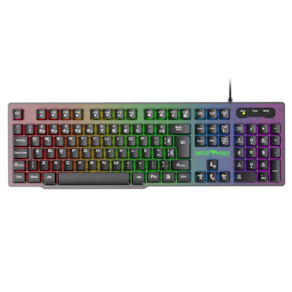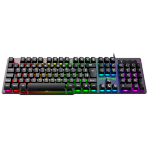 Design de jogo inovador. projeto de engenharia simplificado e humano; elegante e bonito. Teclas multimídia FN. Com as teclas multimídia Fn, você pode realizar operações rápidas na reprodução de música, controle de volume e navegação na Internet para economizar seu tempo. Mais de 10 milhões de vezes a vida útil da chave, mais durável. Plug and play: não precisa de software, só precisa inserir a porta USB.