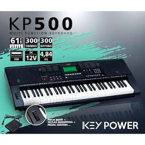 Teclado key power kp500 usb Especificações 61 teclas 300 ritmos 300 timbres entrada usb pitch bend fonte de 12v teclas sensitivas pedal de sustain 4,84 kg