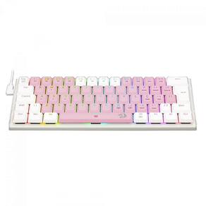 TECLADO MECÂNICO GAMER REDRAGON ANIVIA, RGB, LOW-PROFILE, SWITCH BLUE, ABNT2, ROSA/BRANCO