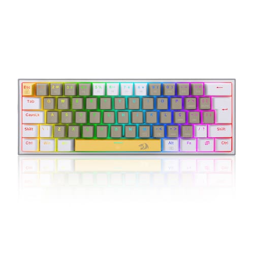 O Teclado Mecânico Gamer Redragon Fizz RGB com Switch Brown K617RGB-YLEGYEWT é um teclado compacto projetado especialmente para atender às necessidades dos gamers que buscam um design portátil, switches mecânicos de alta qualidade e iluminação RGB personalizável. Com o layout 60% e as cores amarelo, cinza e branco, este teclado oferece um equilíbrio entre desempenho, estilo e eficiência.