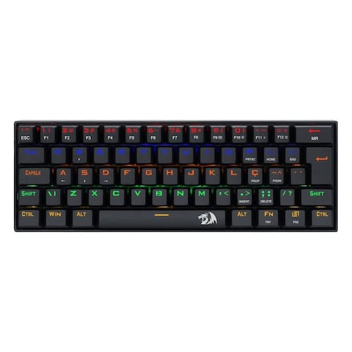 Para os gamers que procuram deixar o máximo de espaço possível sobre a mesa, o Redragon Lakshmi vem no layout compacto 60% ABNT2. Contando com um cabo removível USB-C, o Lakshmi é um modelo muito portátil para aqueles usuários que buscam praticidade na hora levar seus equipamentos. Sem deixar de lado a qualidade na sua construção, as keycaps do Lakshmi são feitas com o método de double shot injection para a longevidade das marcações.
