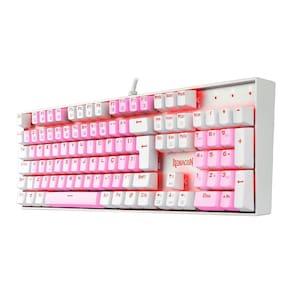 Nome: TECLADO MECÂNICO GAMER SINGLE COLOR REDRAGON MITRA ROSA E BRANCO COM SWITCH MARROM