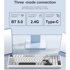 - Conexão de vários dispositivos: o teclado personalizado suporta Bluetooth 5.0, conectividade sem fio de 2,4 GHz e conectividade com fio tipo C, permitindo que você alterne perfeitamente entre 5 dispositivos, dependendo do cenário, com a combinação de teclas FN+. A bateria de 8000mAh garante multitarefa eficiente e desempenho contínuo em todos os três modos de conexão, tornando-a ideal para trabalhar e se divertir