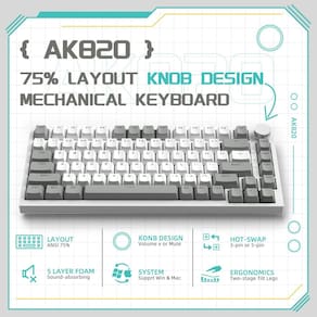 AJAZZ Teclado mecânico para jogos com fio 75% com botão de metal intercambiável a quente compacto branco LED retroiluminado PBT Teclas 82 teclas, construção de junta como vermelho, interruptor anti-fantasma programável USB-C para Windows/Mac - Teclado 75% compacto com design ergonômico: 75% de qualidade com 82 teclas, economiza 25% do espaço enquanto mantém as funções do teclado cremoso de tamanho completo e o botão giratório de metal permite controle extra do seu volume individualmente. Design de teclado pequeno para jogos, aparência elegante, cabo USB removível, plug and play, fácil de carregar, perfeito para minimalistas. Com pés ajustáveis, o teclado mecânico para jogos de PC pode estar em diferentes ângulos e alturas para conforto de digitação para uso a longo prazo, diminuindo a fadiga do pulso. - [Hot Swappable & Pre-Lubricated Linear AS Red Switch] Mergulhe em um reino de personalização com os soquetes de teclado mecânico para jogos de troca a quente do ajazz AK820. Acomoda uma variedade de interruptores, a maioria dos interruptores de 3/5 pinos no mercado, sem necessidade de soldagem. O teclado para jogos com fio adota interruptores vermelhos lubrificados de fábrica, com um som cremoso e silencioso, toque de tecla fluido e consistente desde o início. - [PCB de 1,2 mm projetado com precisão e junta atualizada] Um PCB com fenda de chave única de 1,2 mm meticulosamente trabalhada garante que cada tecla seja registrada com precisão e estabilidade. Espumas de absorção de som e absorção de choque multicamadas (algodão sanduíche Poron + almofada de espuma IXPE + almofada de som PET premium + algodão inferior + almofada de silicone) isolam a placa e o PCB da capa, enriquecendo o estrutura interna, significativo Reduz significativamente os sons de vibração e cavidade e faz com que a mão pareça mais macia e elástica. - [Suporte ao motorista e retroiluminação LED voltada para o norte] Com o software de driver de teclado A.JAZZ AK820, você pode personalizar modos de iluminação legais, brilho e velocidade de acordo com sua preferência pessoal. O teclado personalizado tem 20 efeitos de iluminação, 5 níveis de brilho e 5 velocidades de iluminação. O LED voltado para o norte e a alta transmissão de luz tornam os personagens mais claramente visíveis no modo de luz de fundo, criando uma atmosfera de jogo imersiva. - [Botão CNC e ampla compatibilidade] O teclado para jogos cinza e branco A.JAZZ AK820 com botão CNC pode ser ajustado o volume girando ou pressionando o botão individualmente. O botão de volume resiste ao desgaste e desafia o teste do tempo. Compatível com Windows Vista/7/8/10/11, Mac e Android.