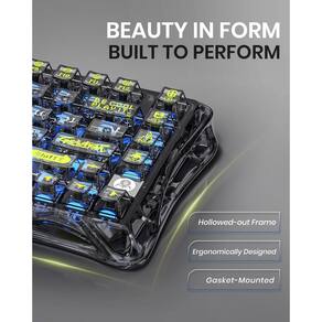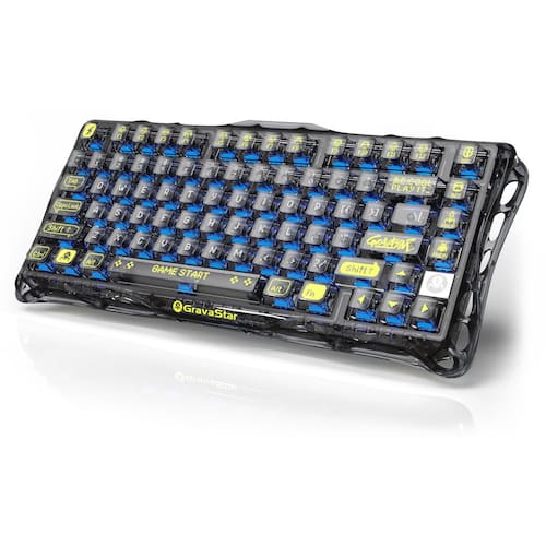 GravaStar Teclado K1 Lite -- Preto transparente - Design elegante e exclusivo: o teclado mecânico GravaStar apresenta um design oco e esquelético que rompe com a estética tradicional do teclado, tornando-o uma peça de destaque em qualquer mesa. Feita de material de PVC durável, a moldura transparente e as teclas maximizam os efeitos RGB da luz de fundo e a aparência resistente ao desgaste. - Experiência de digitação confortável e de alta qualidade: equipado com uma estrutura de junta convencional e interruptores personalizados GravaStar x BSUN, o K1 Lite oferece feedback de teclas suaves e uma experiência de digitação confortável, perfeito para jogos e digitação. O design interno de cinco camadas garante som de tecla de alta qualidade, produzindo áudio nítido e concentrado. - Conectividade trimodo: o teclado GravaStar suporta conexão sem fio de 2,4 GHz (taxa de polling de 1K Hz), Bluetooth 5.0 e conexões com fio (taxa de polling de 8K Hz), oferecendo compatibilidade perfeita com Windows XP Up e MacOS. Pode ser conectado a até três dispositivos ao mesmo tempo e alternar entre eles facilmente por FN e teclas de combinação de teclas. Sem limites sobre a conexão do teclado para atender às necessidades de trabalho, jogos e estudos. - Efeitos de iluminação RGB: o teclado para jogos GravaStar possui 13 modos de iluminação RGB diferentes para escolher, proporcionando uma experiência personalizável e imersiva. Personalização avançada com o software GravaStar Control Center controle completo sobre os efeitos do seu sistema de iluminação RGB, incluindo brilho, velocidade e cor. O aplicativo GravaStar é compatível com todas as versões ativas do Windows, incluindo XP, 7, 8, 8.1, 10 e 11. - Vida útil da bateria confiável: com uma bateria leve de íons de lítio de 4000 mAh, o teclado sem fio GravaStar armazena energia suficiente para que você possa até esquecer que precisa ser carregado. Com até 235 horas entre carregamentos*, ele pode acompanhar as sessões de jogos de maratona mais longas, em qualquer lugar que eles possam levá-lo. Quando finalmente precisar de uma carga, conecte o cabo USB-C incluído para reabastecer sua energia sem interromper o jogo.