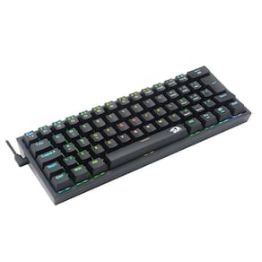 Nome: teclado mec nico gamer fizz rgb preto switch azul Marca: redragon Part number - k617-rgb-b pt-blue Ean - 6950376708090 Características: - layout compacto 60% para os gamers que procuram deixar o máximo de espaço possível sobre a mesa. - iluminação rgb redragon chroma mk.Ii individual por tecla trazendo mais brilho para seu setup. - cabo usb tipo c removível para maior praticidade durante o transporte. - keycaps feitas com o método double shot injection resultando em legendas duradouras. - layout abnt2 feito especialmente para o mercado brasileiro Especificações: Acionamento: mecânico Hotswap diy: sim Cor: preto Formato: 60% Design: carcaça alta Layout: abnt2 Conectividade: usb 2.0 tipo c Altura ajustável: sim Materiais do case: plástico abs Iluminação: rgb redragon chroma mk.Ii Rollover: n-key rollover Comprimento do cabo: 1.8 m Keycaps: abs doubleshot
