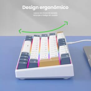 Design: Ultra compacto Tipo de teclado: Mecânico, formato 60% Switch: Brown (Tactile) Retroiluminação: RGB Distribuição: Português Conectividade: Single-mode (Cabo USB-C)