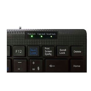 LED indicador de Num Lock, Caps Lock e Scroll Lock ativados