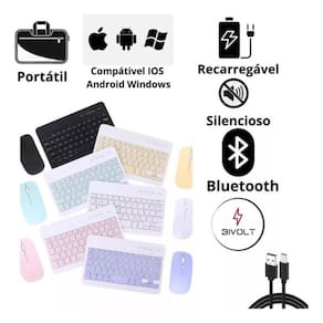 Teclado Mouse Sem Fio Recarregável Bluetooth Cor: Rosa Kit Teclado + Mouse Portátil Sem Fio Bluetooth Recarregável Usb Compatível Celular Tablet Notebook Kit Teclado e Mouse Portátil Bluetooth Sem Fio Transforme sua experiência de trabalho e lazer com o nosso Kit Teclado e Mouse Portátil Bluetooth Sem Fio Perfeito para quem busca praticidade, mobilidade e eficiência, este conjunto é ideal para uso em casa, no escritório ou em viagens. Características Principais: 1. Conectividade Bluetooth: Desfrute de uma conexão estável e rápida com a tecnologia Bluetooth. Sem cabos, sem complicações - apenas uma conexão limpa e eficiente com seus dispositivos. 2. Design Portátil e Compacto: Tanto o teclado quanto o mouse foram projetados para serem leves e compactos, facilitando o transporte em bolsas ou mochilas. Perfeito para profissionais em movimento e estudantes. 3. Teclado Ergonômico e Confortável: Com um design ergonômico, o teclado oferece conforto durante longas horas de uso. As teclas macias e silenciosas garantem uma digitação agradável e sem esforço. 4. Mouse Óptico Preciso: O mouse óptico oferece alta precisão e resposta rápida, tornando-o ideal para tarefas diárias e navegação na internet. Seu design ambidestro é confortável para destros e canhotos. 5. Bateria de Longa Duração: Equipado com baterias de longa duração, este kit garante que você possa trabalhar ou se divertir por mais tempo sem se preocupar em recarregar constantemente. 6. Fácil Configuração: A configuração é simples e rápida. Basta parear os dispositivos via Bluetooth com seu laptop, tablet ou smartphone, e você estará pronto para usar. 7. Compatibilidade Universal: Compatível com uma ampla gama de dispositivos, incluindo Windows, MacOS, iOS e Android, este kit é versátil e pode ser com quase qualquer gadget moderno. 8. Design Elegante: Com um acabamento moderno e elegante, este kit complementa qualquer ambiente, seja um escritório corporativo ou um home office. Especificação: - Interface padrão do dispositivo sem fio 3.0 - Material: PC + ABS - Distância operacional efetiva: 10m / 393,7 - Método de modulação: GFSK - Tensão de trabalho: 3.1-4.2V - Corrente de trabalho: =3,0mA - Corrente de espera: 0,3mA - Corrente de sono: =0,1mA - Corrente de carga: =200mA - Tempo de espera: =95 dias - Tempo de carregamento: = 2 horas - Capacidade da bateria de lítio: 200mAh - Tempo de trabalho sustentável: =76 horas - Vida útil da bateria de lítio: 3 anos - Força do botão: 50-80g - Vida útil: 3 milhões de cliques - Temperatura de trabalho: -10- 55 Celsius Medidas teclado: Altura - 15 cm Comprimento - 25 cm Largura - 0,6 cm Mouse: Comprimento - 11 cm Largura - 6 cm Itens Inclusos: 1x Mouse 1x teclado 1x manual 1x Cabo usb Homologação Anatel: 001682314986 Marca: Não Informado