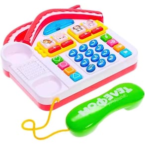 Teclado musical interativo com som e luzes -1400 shiny toys Descrição: Possui 4 modos funções para a criança se divertir modo 1: som, nome dos animais,números, nome dos símbolos da matemática, nome das formas geométricas e jogo de matemática, modo 2: som dos animais com música, nome das formas geométricas com música, barulho das teclas do telefone e jogo de matemática, modo 3: nome das formas geométrica com música, jogo de matemática, teclas tocam música modo 4: jogo onde está. Otelefone faz uma pergunta e você aperta o botão com a resposta funciona com 3 pilhas aa não incluídas