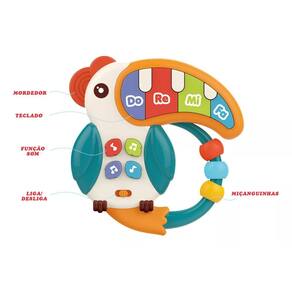 Teclado Musical Passarinho Mordedor Fenix Baby - Fbb-639- Este teclado musical é uma escolha excepcional para cativar e estimular o desenvolvimento dos pequenos.- Com um design lúdico e cores vibrantes, o teclado musical transcende a simplicidade dos brinquedos comuns.- Ao pressionar suas teclas, uma harmonia de sons e músicas diversas encanta, proporcionando uma experiência auditiva única e envolvente para os bebês. A suave luz que acompanha o ritmo da música eleva a diversão.- Mais do que apenas um entretenimento, o teclado musical é uma ferramenta dedicada ao desenvolvimento do seu bebê.CARACTERÍSTICAS:Produto 100% atóxicoCom luz e som sincronizadosPossui teclas de pianoVariedade de músicas e melodiasFunções práticas: liga/desligaAlimentação fácil com 3 pilhas AAAIdade recomendada: a partir dos 12 meses