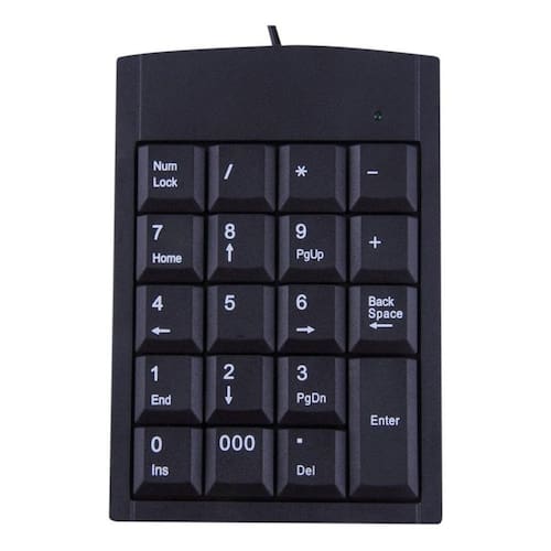 Teclado numérico USB com fio DESCRIÇÃO DO PRODUTO Marca: Genérico Modelo: Teclado/Tipo de número: Membrana Cor: Preto Condição do item: Novo teclado numérico USB com fio