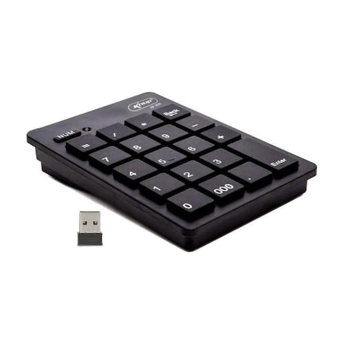 Marca: knupModelo: kp-2038Teclado numerico kp-2038 knup preto wireless 2.4O teclado numérico usb sem fio, é compatível com qualquer notebook ou computador com portas de conexão usb, mas é muito indicado para usuários de notebooks que não possuem teclado numérico integrado. Ele é compacto e pode ser levado dentro do case ou capa para notebook para onde quer que o usuário vá. O teclado vai facilitar a vida de profissionais que realizam tarefas em que seja necessário fazer muitos cálculos, como contadores, administradores e etc. Ele também é indicado para jogadores que usam o teclado numérico para as funções de movimento. O teclado é composto por 20 teclas macias e de pequena espessura, o que torna a digitação muito mais agradável.Especificações:- marca: knup;- modelo: kp-2038;- teclado numérico resistente a choques e impactos;- próprio para usuários de notebooks;- possui as teclas num lock, backspace e tab;- led indicador de num lock;- ideal para transporte;- possui teclas macias, que proporcionam uma digitação confortável;- design slim para maior portabilidade;- conexão usb sem fio ;- mini teclado sem fio com 20 teclas;- melhora a produtividade;- plug and play, não requer driver de instalação;- tecnologia rf 2,4ghz;- modo de suspensão automática: teclado entra em modo hibernação se não houver utilização