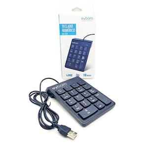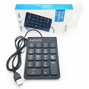 Teclado Numérico USB 18 Teclas Exbom BKN30 Com este teclado numérico usb a ausência de teclados numéricos em seus notebook não fará mais diferença, este teclado digital é a solução perfeita. Compacto, plug and play, conexão via cabo USB, comporta 18 teclas com caracteres gravados a laser e vida útil para 5 milhões de cliques. É fácil de transportar e utilizar em escritórios, bancos, instituições de ensino e até mesmo nas tarefas básicas do dia a dia que exigem muito o uso dos números no teclado. Especificações Conexão USB Portátil 18 teclas Plug and Play Digitação macia e silenciosa Caracteres gravados a laser Vida útil das teclas: 5 milhões de cliques Cor: Preto Comprimento aproximado do cabo: 1,20 m Dimensões aproximadas do produto cm AxLxP: 2,2 x 8,5 x 13,5 cm Homologação Anatel: 078531705567 Ean: 7899718704002