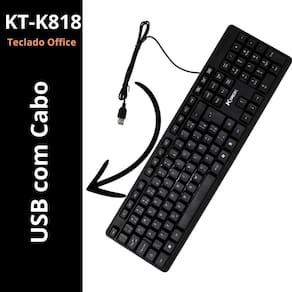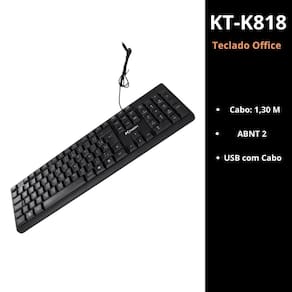 ESPECIFICAÇÕES Marca: Ktrok Modelo: KT-K818 Tipo: Teclado Office Conexão: USB com Cabo Cor: Preto Layout: 107 ABNT 2 Switch: Membrana Comprimento do cabo: 1,30 M Voltagem: 2.2 - 3.3V Vida Últil: 5 milhões de Clicks