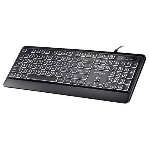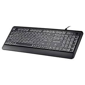 Especialmente desenvolvido para pessoas com baixa visão ou visão subnormal. Possui teclas com letras 4x maiores que os teclados tradicionais, com retro iluminação em led, uniformemente distribuída, ideal para ambientes com pouca luz, podendo ligar/desligar e ajustar a intensidade, garantindo fácil leitura e ótimo conforto visual. Especificações: Teclas com letras grandes, iluminadas com led. Teclas multimidia. Led ajustável liga/desliga/ajuste intensidade . Conexão usb, cabo com 1.35 metros. Teclas macias e suave, com baixo ruído. Padrão us internacional, com acentuação, 104 teclas. Resistente a água. Manual de configuração incluso. Compatível com windows, ou linux.