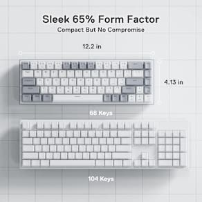 Redragon Teclado para jogos K631 65% RGB com fio, teclado mecânico compacto de 68 teclas de troca a quente com soquete 100% hot-swap, PCB montado em placa de modificação livre e teclas de seta dedicadas, interruptor linear vermelho silencioso - Sim! Troca a quente verdadeira – a inovação transformadora com teclado Redragon compatível com 99,8% + interruptores compatíveis com mod a quente está disponível agora. O design exclusivo da estrutura do soquete torna a montagem do interruptor mais fácil e menos oscilante. - Layout de 68 teclas com fio – um layout de 65% K631 no modo com fio atende à necessidade do usuário de teclas de seta separadas e teclas de função extra. O design fino ultracompacto e leve de 68 teclas libera espaço precioso na mesa para menos bagunça. - Interruptores vermelhos de troca a quente – Troca a quente com quase todos os tipos de interruptores no mercado, não importa 3 pinos ou 5 pinos. Interruptores mecânicos lineares básicos silenciosos, o deslocamento da tecla suave torna cada clique fácil de registrar. Fácil de modificar ou atualizar de acordo com sua preferência, sem necessidade de pesquisa em fórum. - RGB Groovy vibrante – até 20 modos de retroiluminação predefinidos são livres para escolher pelo próprio teclado. O brilho e a velocidade de fluxo também são ajustáveis a bordo. O novo maravilhoso modo de sincronização de música iluminará sua vibração de discoteca de mesa, um show de luzes para mergulhar. - Software Pro suportado - Expanda suas opções usando o software disponível para projetar seus próprios novos modos e efeitos encontrados na Redragonshop. Macros com diferentes atalhos ou atalhos para trabalho e jogos mais eficientes. - Dedicado para FPS Gamer – Coloque o teclado adequado diretamente na sua área de trabalho e não fique mais torto para economizar espaço do mouse, seu mouse nunca mais baterá no teclado. Aproveite agitando o mouse sem preocupações e vá buscar aquele Team Kills.