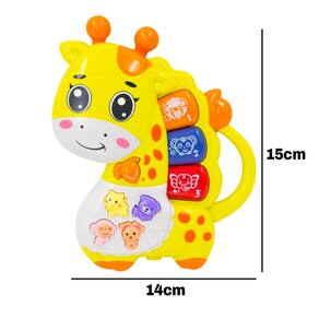 Teclado Piano Musical Bebê Brinquedo Infantil Divertido Som O Brinquedo Musical Teclado estimula a percepção de cores e desenvolvimento sensorial e cognitivo, além de ser uma diversão garantida para crianças. Os Sons emitidos despertam a criatividade dos pequeninos, ajudando no desenvolvimento auditivo e coordenação motora. Com lindas melodias, cores vibrantes, texturas suaves, despertando a atenção e interesse do pequeno. Atenção: Não Recomendado para Menores de 18 Meses Especificações Técnicas: - Modelo: Brinquedo Musical Teclado Girafa CY2214 - Material: Plástico, Componentes Eletrônicos. - Funções: 3 com 7 sons diferentes. - Teclas: 8 - Alimentação de Energia: 2 Pilhas AAA(Não Incluso) - Certificação Inmetro / Selo de Segurança: CE-BRI/INNAC - 02484-01A - Dimensões Aprox.: 14cm (Largura) X 15cm (Comprimento) X 3cm (Profundidade) - Peso Aprox.: 120g Itens Inclusos na Embalagem: - 01x Brinquedo Musical Teclado Marca: Não Informado
