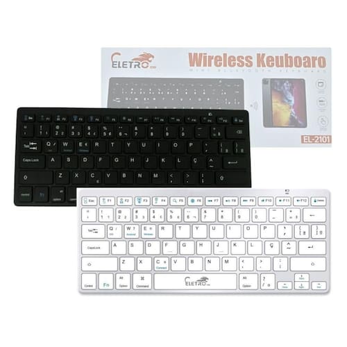 Código de barras: 7891123021019 Homologação anatel: 16338-21-13997 Teclado Portátil Bluetooth Sem Fio Ultra Fino Tablet Notebook Computador Marca: ELETRO O Teclado Portátil Bluetooth Sem fio é perfeito para ajudá-lo a realizar suas atividades diárias. A combinação é adaptada para fazer diferentes tarefas, sejam elas de trabalho, ou de qualquer tipo. Como conectar: 1 - Localize a chave de conexão na parte inferior direita do teclado, e deslize o interruptor para ON para liga-lo (Ou OFF para desligar); 2 - Após pressionar o botão ON, pressione a tecla de conexão para iniciar o teclado e preparar para conexão Bluetoo Descrição técnica: -Teclado sem fio com design ultra fino e teclas silenciosas. -Chave multimídia 13 (FN+) -Área de alcance: 10 metros -Material: ABS sólido e duradouro -Tempo de carga: 2 horas -Tensão: 3V -Sistema plug and play com conexão Bluetooth. -Distância de conexão de até 10 metros. -Necessita de 2 pilhas AAA (não inclusas) com Windowns, Android, IOS, Tablet mobile, Pc, TV com (Bluetooth) Medidas: L: 21,5 x C: 3,5 x A: 13,5 cm Peso do Produto: 295g Disponível nas cores: -Branco -Preto **Informar as cores desejadas no campo Observações