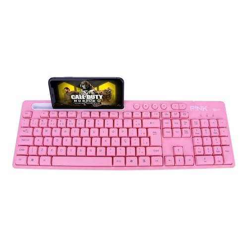 Teclado rosa pink usb smart com suporte para celular Teclado usb smart com suporte para celular rosa pink Especificações:Conexão: usb 2.0Layout: abnt2Material: abs+hips6 funções multimídiaCompatível: windows 7 / 8 / 10Comprimento do cabo: 1,50mTeclas: 108 teclasCor: rosa Especificações técnicas: Dimensões do teclado:Comprimento: 2,7cmLargura: 44cmAltura: 14,5cm Cod. De barras: 7908429303692Imagens meramente ilustrativasNão acompanha smartphone Homologação Anatel: 166292013501