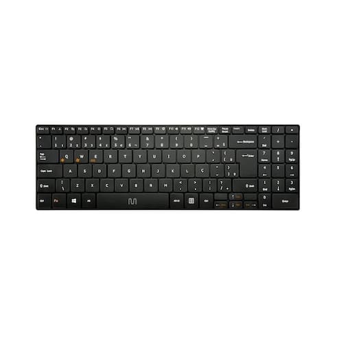 Este teclado é ideal para proporcionar praticidade e simplicidade ao seu dia-a-dia, sem o uso de fios. Com tecnologia de conexão Bluetooth, realize o pareamento com seu dispositivo, e comece a usar. O teclado conta com 16 teclas multimídia de atalho, design ergonômico, além de todas as teclas serem Scissor para maior conforto. *Alimentados por apenas 2 pilhas AAA (Não inclusas), você não precisa se preocupar em carregar fios. Imagens meramente ilustrativas Caracteristicas Resistente à Líquido: Não Duração da bateria (meses): 12 meses Clique e ou Teclas Silenciosas: SIM Pilha inclusa: NÃO Quantidade Teclas: 101 Quantidade Teclas Multimídia: 16 Alimentação: 2 Pilhas AAA Conexão: Bluetooth Compatibilidade: AndroidWindowsLinuxMacOSWindows Cor: Preto Conteúdo da Embalagem: 1 Teclado Bluetooth; 1 Guia Rápido; Composição do Material: PP Peso do produto: 220g Largura do produto: 11.3cm Altura do produto: 0.7cm Comprimento do produto: 34.3cm Certificado Anatel: 087551703111 Quantidade de Botões: 3