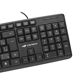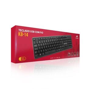 Teclado Usb C3tech Padrao Kb 14bk Preto Tenha simplicidade no seu dia a dia com o KB-14bk da C3tech. Este teclado foi produzido para que você não precise de configuração, basta conectar e usar.Teclas altas e sistema anti-respingo te proporcionam muita confiabilidade e uma excelente experiência em sua digitação. Dimensão: 438*128*22 mm Peso: 345g Conexão: USB 1.1/2.0 Raio de Comunicação Sem: Fio: N/A Tipo de Receptor Sem Fio: N/A Sistema de Tecla: Membrana Tipo de Switch / Tecla: Tecla Alta Tipo de Gravação na Tecla / Serigrafia: Silk Qtde Botões: 107 Layout ABNT2 Possui Atalhos Multimídia: Não Possui Iluminação: Não Possui Ajuste de Altura: Sim Comprimento de Cabo: 1.2 m Revestimento de Cabo: PVC Anti-Respingo: Sim Plug and Play: Sim Compatibilidade: Windows 7/8/10 Possui Software: Não Possui Atalho para Bloqueio de Tecla FN: Não Tensão de Operação: DC 5V Corrente de Operação: 300mA Consumo: 1 watts Alimentação: USB Força de Acionamento de Tecla: 5510gf Pressão de acionamento das Teclas: =1.0kgf Curso total: 4.2 mm + / - 0.5 mm. Distância de Acionamento de Tecla: 0.9 mm Tempo de Vida de Tecla 8 milhões de acionamentos Temperatura Ambiente para Operação: 5C a 50C Umidade Ambiente para Operação: 10% ~ 85% RH Altura da embalagem: 2.5 CM Largura embalagem: 14.5 CM Comprimento embalagem: 45 CM Peso embalagem: 04.15 KG Part Number/SKU: KB-14BK EAN do produto: 7898555210806