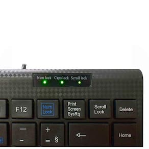 LED indicador de Num Lock, Caps Lock e Scroll Lock ativados