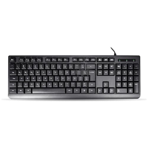 . Marca: K-Mex Modelo: KM-D128 Cor: Preto - Tipo: Membrana - Layout: ABNT2 - Interface: USB - Quantidade de teclas: Noventa e cinco teclas + doze teclas multimídia - Caracteres impressos a laser para maior durabilidade - LED verde indicador de Num Lock, Caps Lock e Scroll Lock ativadosDimensões e peso: - Teclado C x L x A : 455 x 35 x 60mm - Comprimento do cabo sem conector : 1900mm 50mm tolerância - Peso líquido: 0,485kg