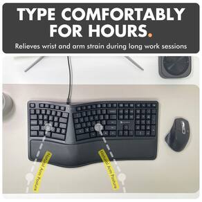 - Sinta-se melhor, trabalhe melhor: longas horas no computador podem ser difíceis, no entanto, temos uma solução. Com um design focado no usuário, nosso teclado ergonômico dividido ajudará você a conquistar sua carga de trabalho com menos desconforto no pulso.