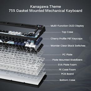 Teclado para jogos XVX/Womier S-K80 de 75% com tela LCD TFT colorida, teclado mecânico que pode ser trocado a quente, teclado personalizado de 82 teclas com retroiluminação RGB, estabilizador pré-lubrificado para Mac/Win - tela OLED de cores vibrantes O design de tela OLED DIY no canto superior direito do teclado permite que você visualize em imagem GIF personalizada, caps lock, modo de conexão, WIN/MAC, sistema, brilho/velocidade da luz de fundo, modo/cor RGB, volume e idioma e muito mais. A altura do ângulo oblíquo de 11° da tela estará mais de acordo com os hábitos visuais. - Teclado mecânico montado em 75% com tema preto O teclado adota as teclas esféricas ASA Profile Art Theme Caps. Experimente o máximo de conforto enquanto joga com o design de encaixe de vedação do S-K80. O teclado possui uma placa de posicionamento em EVA e preenchimento inferior para uma sensação suave e responsiva. O design do suporte de vedação melhora a estabilidade e reduz o ruído de digitação para uma experiência de jogo envolvente. - Teclado personalizado premium que pode ser trocado a quente Os interruptores lineares pré-lubrificados com difusores de luz transparentes voltados para o sul proporcionam uma sensação confortável de pressionamento de tecla, um incrível som de digitação limpo e pronto para uso. O PCB de troca a quente deste teclado montado em gaxeta é compatível com interruptores de 3 ou 5 pinos. - Teclado personalizável do software Pro As configurações de exibição de imagem de fundo RGB, macro e GIF do teclado podem ser totalmente personalizáveis por meio do driver do teclado. Para usuários que desejam personalizar seus teclados, esses designs oferecem mais alternativas. (O modo 'Sincronização de música' permite padrões rítmicos de iluminação a partir da música reproduzida.) - Iluminação de fundo RGB definitiva O teclado tem 19 efeitos de iluminação e 9 cores de iluminação, além das quais o brilho e a taxa de fluxo das luzes do teclado podem ser ajustados. Este teclado temático é compatível com o sistema Mac/Win. A conexão removível TYPE-C oferece a flexibilidade de conectar vários dispositivos, tornando-a uma excelente opção para jogos e uso diário.