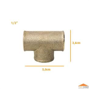 Tee em Latão amarelo ideal para duplicar a saída de água para instalação hidráulica com rosca de 1/2".