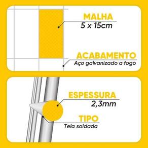 - Marca: DTOOLS - Material: Fio de aço galvanizado - Espessura do fio: 2,3mm - Medidas: 25 metros de comprimento x 1,50 metros de altura - Malha: 5 x 15cm