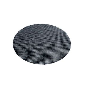 A tela antiderrapante possui um tamanho aproximado de 29 cm de diâmetro e uma espessura de 3mm. Ela é feita com uma composição de poliéster e PVC, garantindo durabilidade e resistência.
