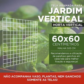 KIT TELA ARAMADA 60X60 BRANCO 2 UNIDADES PARA JARDIM VERTICALA tela aramada é um produto extremamente versátil. Ela possui um aspecto tanto comercial quanto residencial.Com ela é possível montar estante e balcão aramado, para expor e guardar roupas, sapatos e diversos outros produtos, montar cercados pet para porquinho da índia, coelho, cachorro, gato; pode também ser usada para exposição de produtos como acessórios e bijuterias, bem como o tão conceituado Memory Board ou painel de fotos, um belo item de decoração e organização para onde preferir. Uma ótima ideia para usar a tela aramada é como jardim vertical ou horta suspensa, podendo pendurar vasos e cachepôs para decorar ambientes externos e internos, como jardim de inverno, área de lazer, sala, escritório e muito mais.Algumas sugestões de uso: - Jardim vertical - Memory Board - Painel de recados - Expositor de produtos e acessórios - Montagem de estantes e balcões - Montagem de cercado pet - Montagem de cercas - etcDIMENSÕES APROXIMADAS: - Comprimento: 60cm - Largura: 60cm - Espessura: 4mmCARACTERÍSTICAS: - Cor: Branco - Material: Aço - Malha: Aproximadamente 5 cm (espaço interno) ITENS INCLUSOS: - 2 Unidades de Tela Aramada 60x60cm BrancoOBS: NÃO ACOMPANHA VASOS, FLORES E GANCHOSOBSERVAÇÕES: - Garantia de 3 meses contra defeitos de fabricação - Imagens ilustrativas - Não nos responsabilizamos pelo uso inadequado do produto - As cores podem sofrer variações de tonalidadeNão deixe de conhecer nossos outros produtos! Marca: IGUANNA