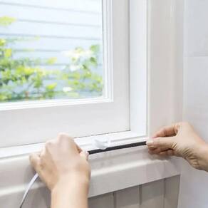 Remova o plástico protetor da Fita e coloque os pedaços na janela.