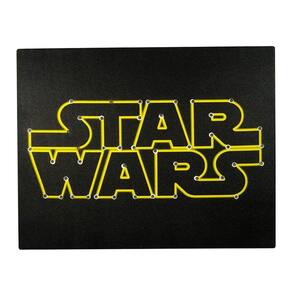 Esta tela de parede iluminada com o logotipo de Star Wars foi projetada para impressionar os fãs da força com sua aparência marcante e vibrante. Essa tela resistente com o logotipo autêntico que se ilumina com baterias cria um elemento visual atraente para acentuar qualquer espaço vazio. Pronto para começar uma conversa e para elevar o humor, essa peça de sotaque descolada e peculiar certamente encantará o pequeno fã enquanto ele a exibe com orgulho para seus amigos e colegas.
