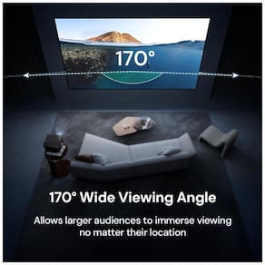 O ângulo de visão de cerca de 170° permite que a imagem permaneça visível e legível para espectadores posicionados em diferentes pontos da sala, incluindo assentos laterais. A construção utiliza moldura em liga de alumínio para montagem fixa em parede, oferecendo rigidez estrutural e acabamento discreto, adequada para uso contínuo em instalações permanentes.