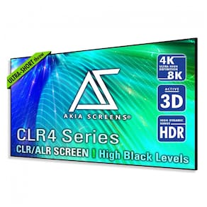 A tela de projeção fixa ALR de 123 polegadas da Akia Screens é projetada para uso com projetores de ultracurta distância instalados sobre mesa ou rack, oferecendo grande área de exibição em formato 16:9 para aplicações de cinema em casa e salas multimídia. O material de projeção utiliza tecnologia CLR4 (Ceiling Light Rejecting), que foi desenvolvida para reduzir a interferência da luz proveniente do teto, melhorar o nível de preto e aumentar o contraste em relação às telas brancas convencionais.