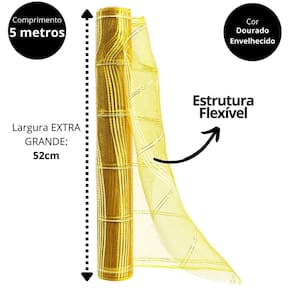 São 52cm de largura em 5 metros de comprimento cada fita, ela possui uma estrutura semirrígida que pode ser moldada criando lindos laços ou faixas decorativas.