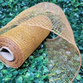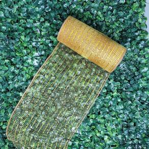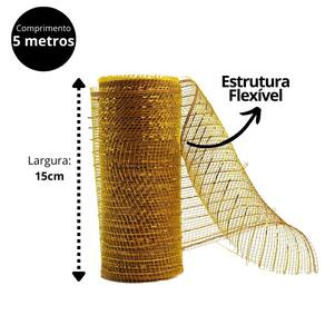 Tela Decorativa Fita Malha Tule Dourado Natal 15cm x 5metros