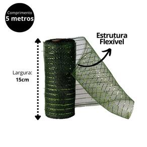 Tela Decorativa de Natal Malha Tule Sisal Verde Fosco – 15cm x 5m