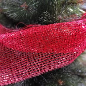 Tela Decorativa de Natal Malha Tule Vermelha com Fio Brilhante – 25cm x 5m