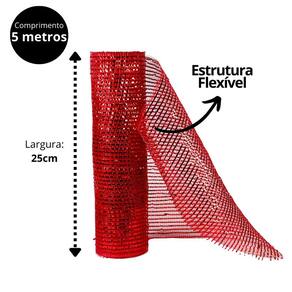 Com 25cm de largura e 5 metros de comprimento por rolo, esta tela pode ser utilizada para decorar árvores de Natal, moldar laços em guirlandas, arranjos de mesa, embalagens de presentes e enfeites variados. Sua estrutura flexível e maleável facilita o manuseio, permitindo criar formas criativas com praticidade.