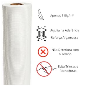 A tela de fibra de vidro para alvenaria é a solução ideal para reforçar e proteger superfícies na construção civil. Com malha de 10x9?mm e fornecida em rolos de 1,00?m x 25,00?m, ela combina leveza, resistência e durabilidade para aplicações exigentes. Produzida em fibra de vidro branca de alta qualidade, oferece excelente aderência a cimento, argamassa e outros revestimentos, podendo ser aplicada em diversas superfícies planas, como alvenaria, gesso, madeira, PVC e muito mais. Sua composição reforçada ajuda a prevenir fissuras e desgastes prematuros, prolongando a vida útil das obras e garantindo acabamentos mais uniformes e seguros. Principais vantagens e aplicações:* Reforço de revestimentos e rebocos, evitando trincas e rachaduras* Impermeabilização de superfícies planas* Isolamento térmico em câmaras frigoríficas e suporte para lã de vidro* Contribui para isolamento acústico em salas e câmaras especiais