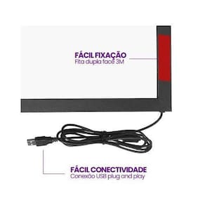Tela Moldura Touch Screen Infra Vermelho 19 16:9 10 Toques O&m A moldura IR converte qualquer monitor em Touchscreen. Com facilidade de instalação e plug and play, basta colocar a tela e conectar o usb que ela irá funcionar.